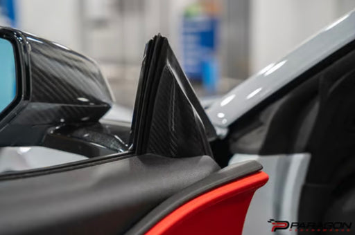 Paragon C8 Corvette Carbon Fiber Anti Buffeting A Pillar Overlay Reduce wind noise in your cabin and add a subtle carbon fiber accent to the exte...