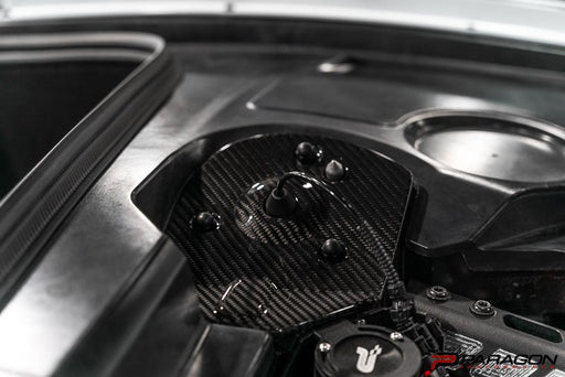 Protect and cover your rear strut towers from water, dirt, and other debris in your C8 Corvette engine bay with our Carbon Fiber Strut Tower Covers...