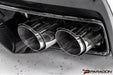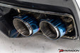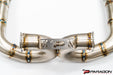 This is an in-house designed long tube muffled exhaust system, unlike many others out there. This unique system follows the lines of the car, mimicking the subframe line, flowing into an X-pipe, and then traveling through two mufflers that sit centered behind the rear bumper's grille. It then splits into 3" quad tips.
