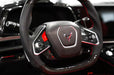 Add a touch of carbon fiber to your steering wheel with this CCS Steering Wheel Black Side Overlay. Installs easily by peeling and sticking it over your existing black trim. Pairs well with other carbon fiber interior accessories. Available with White, Blue or Red text.